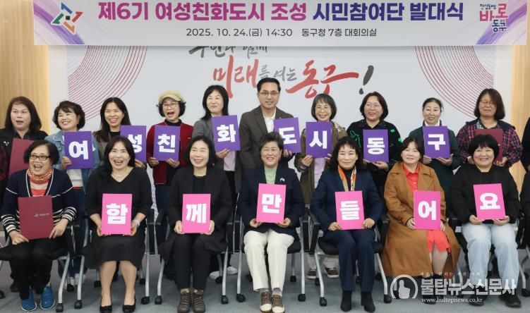 불탑뉴스신문사 차복원 기자 | 대전 동구는 24일 구청 대회의실에서 ‘제6기 여성친화도시 조성 시민참여단’ 발대식을 개최하고, 성평등 문화 확산을 위한 본격적인 활동에 나섰다고 밝혔다.