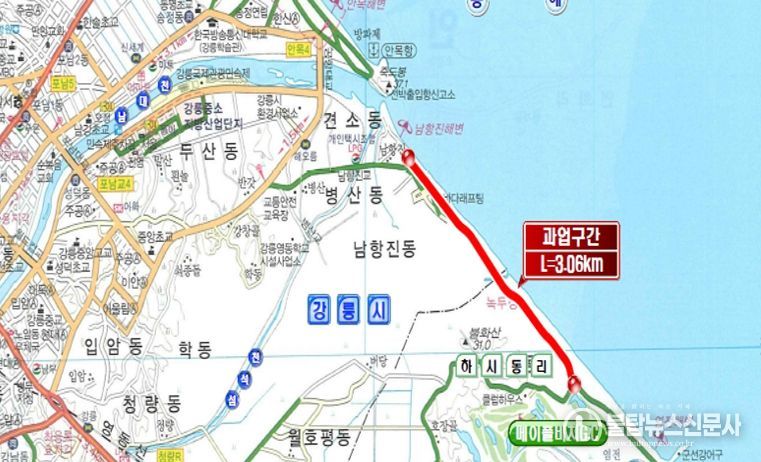 이번 사업은 강릉시 해안선 전체(총 64.5㎞) 중 마지막으로 단절된 3㎞ 구간(남항진~안인)을 연결하는 사업으로, 총사업비 477억 원이 투입된다.