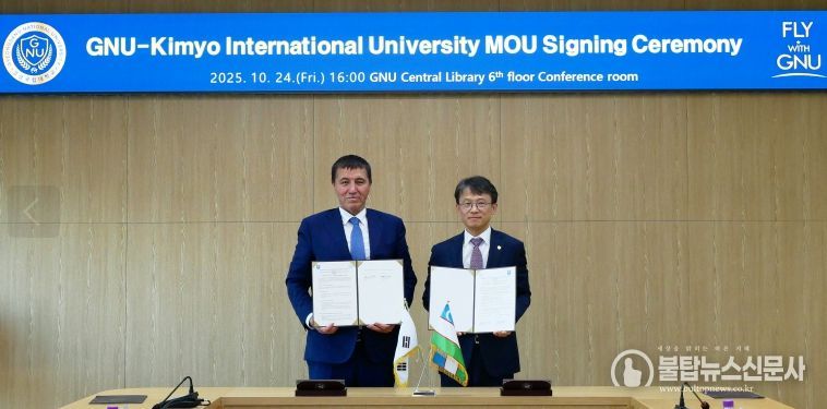불탑뉴스신문사 차복원 기자 | 경상국립대학교는 10월 24일 가좌캠퍼스 도서관 6층 회의실에서 우즈베키스탄 기묘국제대학(KIUT, Kimyo International University)과 학술·학생 교류에 관한 협정을 체결했다.