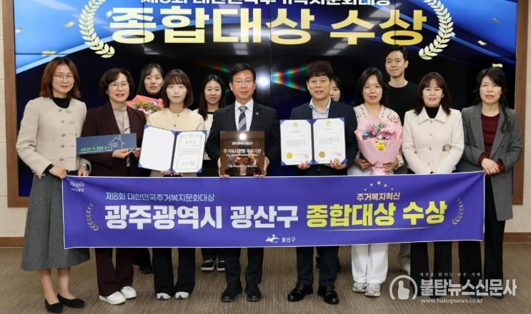 불탑뉴스신문사 차복원 기자 | 광주 광산구가 지난 20일 전국 최초 ‘살던집 프로젝트’ 등 시민 삶을 바꾼 주거복지를 구현한 정책 성과로 ‘제8회 대한민국 주거복지문화대상’에서 영예의 종합대상을 받았다.
