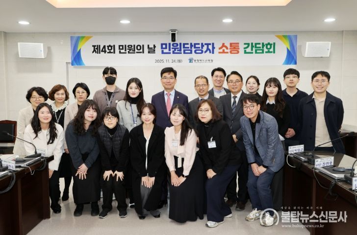 불탑뉴스신문사 차복원 기자 | 충청북도교육청은 11월 24일, 제4회 민원의 날을 맞아 민원업무 담당자들을 격려하고, 현장의 목소리를 직접 청취하는 뜻깊은 자리를 마련했다고 밝혔다.