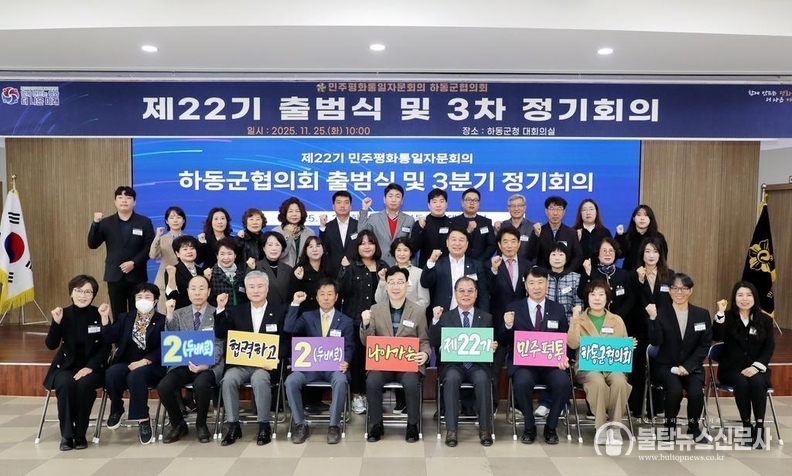 민주평화통일자문회의 하동군협의회(협의회장 이홍곤, 이하 ‘민주평통 하동군협의회’)가 25일 오전 10시, 하동군청 대회의실에서 ‘제22기 출범식 및 2025년 3차 정기회의’(이하 ‘출범식’)를 개최했다.