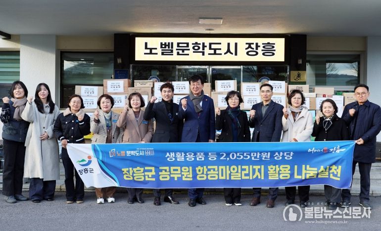 불탑뉴스신문사 차복원 기자 | 장흥군 공무원 122명이 공적 항공마일리지를 활용해 마련한 20,558,250원 상당의 생필품 197점을 지역 취약계층에 전달했다.