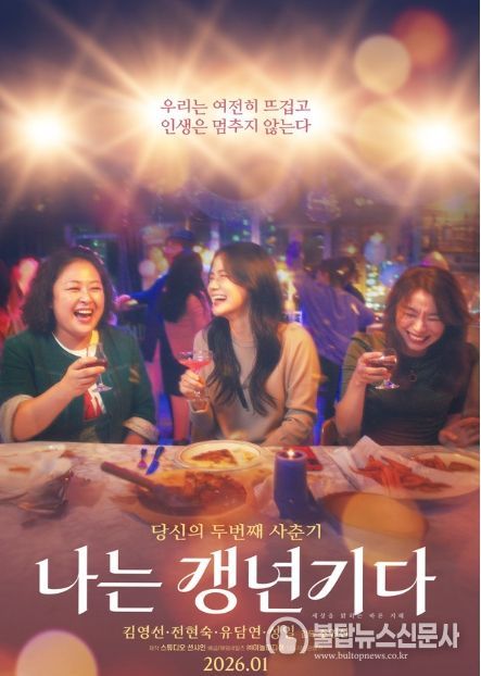 불탑뉴스신문사 한민석 기자 | 동명의 인기 에세이를 원작으로 한 '나는 갱년기다'가 26년 1월 개봉을 확정 짓고 메인 포스터를 공개하며 화제를 모았다.[제 작: 스튜디오 션샤인 | 배 급: ㈜이놀미디어 | 감독: 조연진 | 출연: 김영선, 전현숙, 유담연, 성일, 박건락, 안재원, 이민아(특별출연) 외]