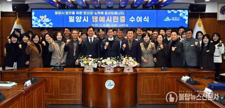 밀양시는 앞으로도 지역발전에 기여한 공로자에게 명예시민증을 수여해, 밀양의 미래 성장과 발전을 함께 이루는 ‘동행 협력 기반’을 확장해 나갈 예정이다.