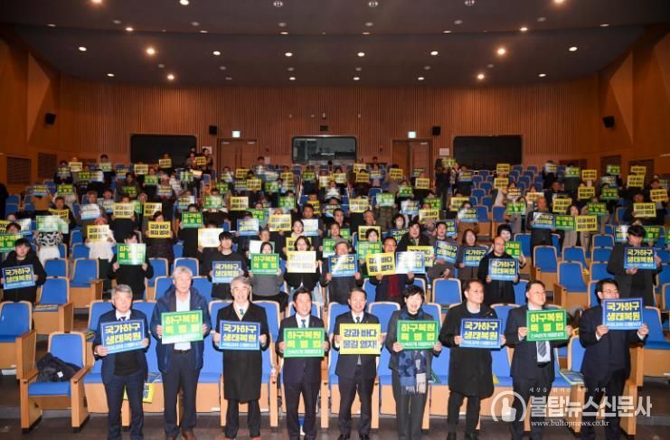 이어진 종합 토론에서는 허재영 초대 국가물관리위원회 위원장을 좌장으로 학계, 정부, 시민사회 전문가들이 참여해 농업용수 공급 우려 해소 방안과 구체적인 복원 시나리오에 대해 열띤 토론을 벌였다.