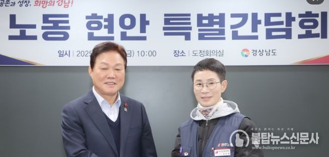 불탑뉴스신문사 송행임 기자 | 경상남도는 민주노총 경남지역본부와 기업 노동조합 지회장들과 만나 지역 노동 현안에 대한 의견을 나누고, 노동 존중 및 상생 노사문화 조성을 위한 협력을 다짐했다.