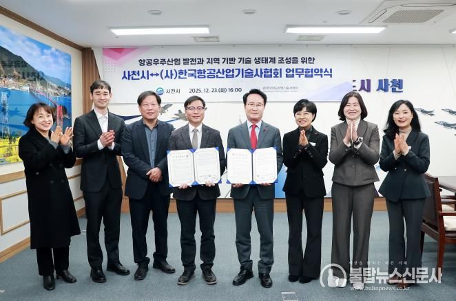 불탑뉴스신문사 송행임 기자 | 사천시는 지난 23일 시청 열린시장실에서 사단법인 한국항공산업기술사협회와 항공우주산업 발전과 지역 기반 기술 생태계 조성을 위한 업무협약(MOU)을 체결했다.