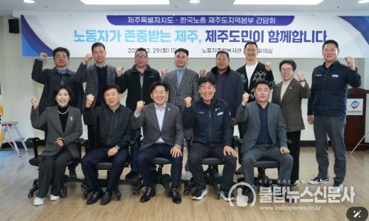 불탑뉴스신문사 송행임 기자 | 제주특별자치도가 노동 현안에 대한 현장의 목소리를 청취하고 노·정 간 소통을 강화하기 위해 한국노총 제주도지역본부와 간담회를 개최했다.