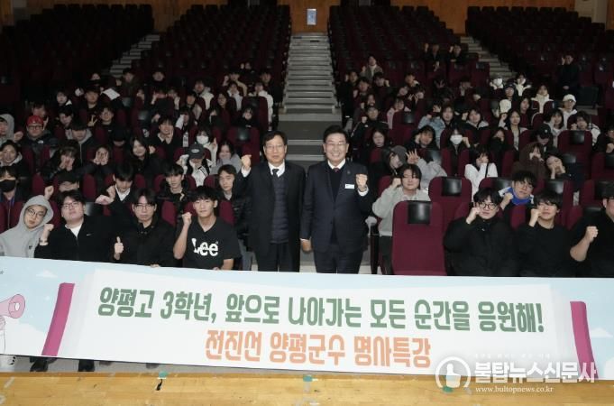 불탑뉴스신문사 차복원 기자 | 양평군은 지난 30일 양평고등학교 대극장에서 3학년 학생 120여 명을 대상으로 ‘꿈을 향한 준비, 밝은 내일의 시작’을 주제로 명사 특강을 진행했다고 밝혔다.