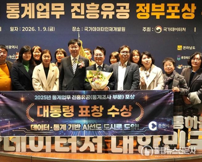 불탑뉴스신문사 차복원 기자 | 춘천시가 9일 2025년 통계업무 유공을 인정받아 강원특별자치도 18개 시군 중 최초로 대통령 표창을 수상했다.