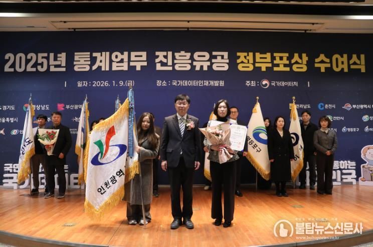 불탑뉴스신문사 차복원 기자 | 인천 서구는 지난 9일 통계업무 분야에서 우수한 성과를 인정받아 ‘2025년 통계업무 진흥유공(통계조사 부문)’ 국무총리 기관 표창을 수상했다고 밝혔다.