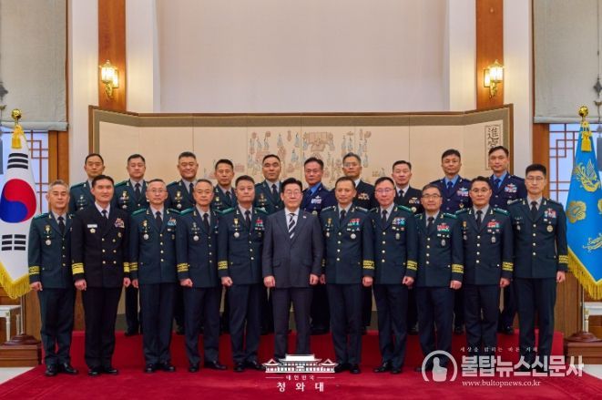 불탑뉴스신문사 차복원 기자 | 이재명 대통령은 오늘 오후 중장 진급 및 보직 신고, 그리고 수치 수여식을 개최했다.