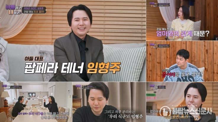 21일 방송되는 TV CHOSUN '아빠하고 나하고 시즌3'에서는 ‘세계적인 팝페라 테너’ 임형주와 세계적인 아티스트를 키워낸 ‘역대급 카리스마’의 임형주 어머니가 등장한다. 임형주의 어머니는 직접 아들의 무대를 진두지휘하며 의상, 조명, 음악 하나하나 세세하게 챙기며 소속사 대표이자 ‘여장부’ 엄마 면모를 선보인다. 임형주는 “저와 엄마의 관계가 특별하다. 저도 이제 불혹이고 어머니도 칠순을 바라보는데 그동안 보낸 시간보다 보낼 시간이 더 적겠다 싶어서 응어리를 풀어내고 싶다”라며 ‘아빠하고 나하고’를 찾은 이유를 밝혔다. 이어 그는 어머니에 대해 “제가 너무 사랑하고 한편으로는 미워하는 애증의 대상이다”라고 덧붙였다. 남다른 카리스마를 지닌 임형주 어머니에 전현무는 “우리 엄마 같다. 우리 엄마도 엄격하다”라고 공감하며 임형주 모자(母子)가 어떤 관계일지 궁금해했다.