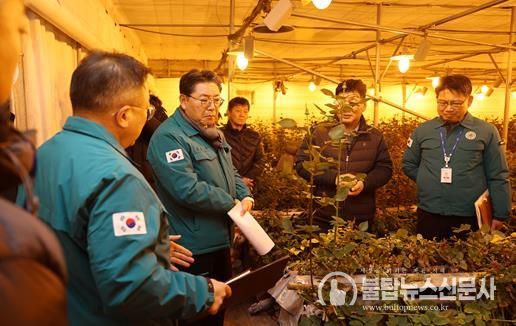 이날 홍태용 시장은 한파와 화재에 취약한 시설하우스 농가를 방문해 보온장치와 화재감지기 등을 점검하고 겨울철 농가 피해가 가장 큰 화재 예방에 각별한 주의를 당부했다.