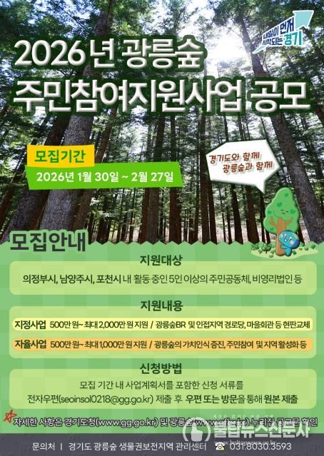 불탑뉴스신문사 차복원 기자 | 경기도가 광릉숲 생물권보전지역 활성화를 위해 2026년 광릉숲 주민참여지원사업 참여자를 모집한다.