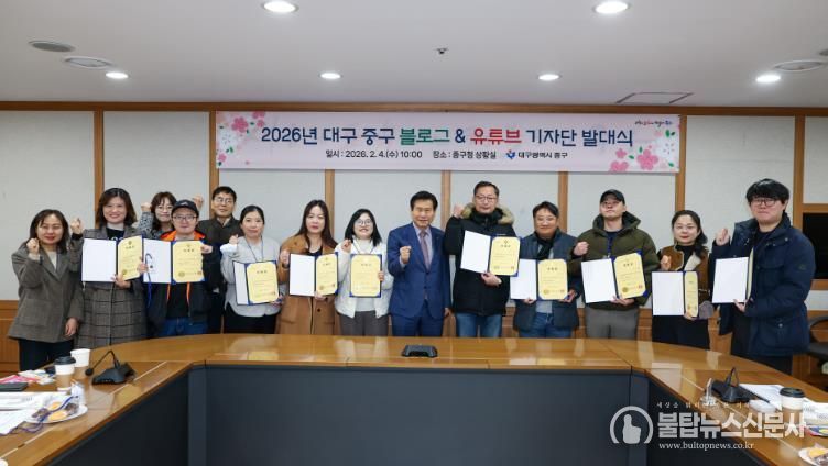 불탑뉴스신문사 차복원 기자 | 대구 중구는 4일 구청 상황실에서 ‘2026년 블로그·유튜브 기자단 발대식’을 개최하고, 구정 홍보 활성화를 위한 본격적인 활동에 들어갔다.