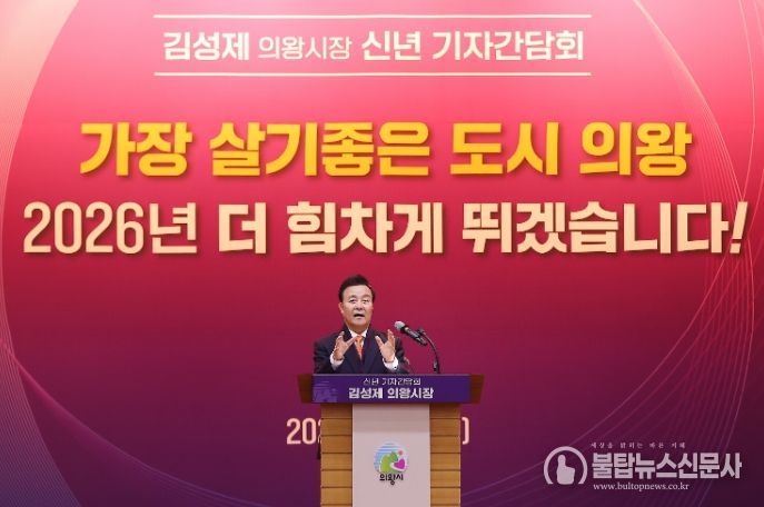 불탑뉴스신문사 차복원 기자 | 김성제 의왕시장이 5일 시청 대회의실에서 2026년 신년 기자간담회를 열고 민선8기 의왕시 주요성과와 2026년 시정 운영방향에 대해 설명하는 시간을 가졌다.