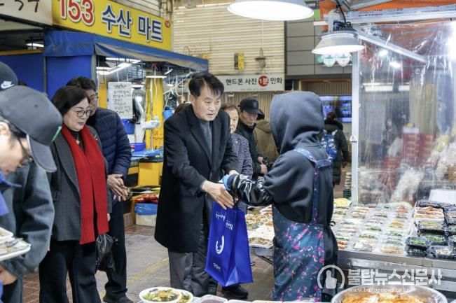 불탑뉴스신문사 차복원 기자 | 하은호 군포시장은 설 명절을 앞둔 지난 5일 관내 전통시장을 찾아 장보기 행사를 진행하며 시장 상인들을 격려했다.