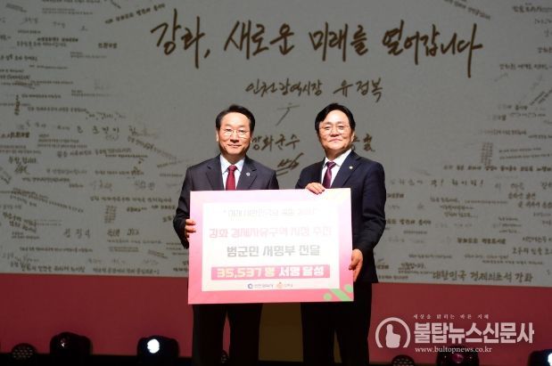이어 열린 ‘생생톡톡 애인(愛人) 소통’ 행사에서도 경제자유구역 지정을 염원하는 군민들의 서명이 담긴 서명부를 유정복 시장에게 전달하며, 강화의 변화와 도약을 바라는 군민들의 뜻을 직접 전했다.