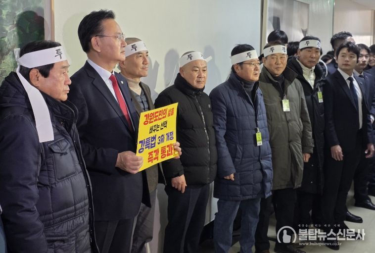 김 지사는 “행정통합 시도인 5극은 빠른 속도로 국회 심사대에 오른 반면, 정부 부처 협의까지 마친 강원특별법 3차 개정안은 17개월 째 단 한 차례도 법안심사 논의가 이뤄지지 않았다”며 강한 유감을 표했다. 이어 “강원・전북・제주・세종, 이른바 3특과 행정수도 특별법안 역시 균형발전 차원에서 신속히 처리돼야 한다”고 강조했다.