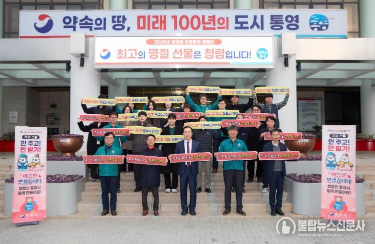 불탑뉴스신문사 한기석 기자 | 통영시는 설 명절을 앞두고 공직사회의 청렴 의식을 확산하고 공직자 행동강령 준수를 당부하기 위해 지난 10일 1청사 현관에서‘2026년 설명절 대비 청렴통영 캠페인’을 실시했다.