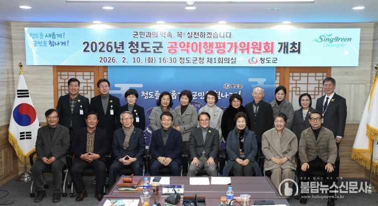 불탑뉴스신문사 차복원 기자 | 청도군은 지난 10일 군청 제1회의실에서 ‘2026년 청도군 공약이행평가위원회’를 개최하고 민선 8기 공약사항에 대한 추진 상황을 점검했다.