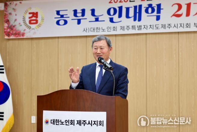 불탑뉴스신문사 한기석 기자 | 김완근 제주시장은 2월 11일 조천주민교류센터 회의실에서 열린 제21기 동부노인대학 졸업식에 참석해 축하 인사를 전했다.