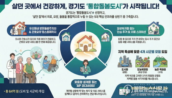 이번 사업은 오는 3월 ‘의료·요양 등 지역 돌봄의 통합지원에 관한 법률’ 시행에 앞서 각 지역의 인구 구조와 특성에 맞춘 ‘경기형 통합돌봄 모델’을 구축하려는 선제적 조치다. 경기도는 도비와 시군비 총 64억 원의 예산을 투입할 예정이다. 국정 제1 동반자로서 경기도가 통합돌봄 정책 기조를 가장 앞장서서 실천함으로써 경기도의 실행 리더십을 증명하는 의지를 담고 있다.