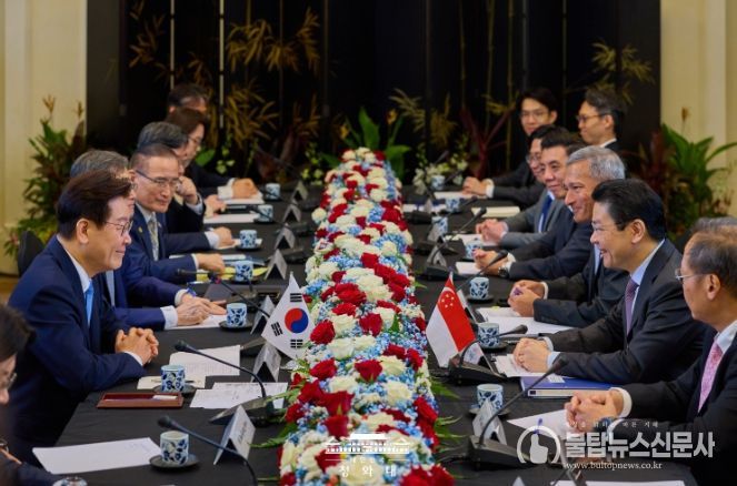불탑뉴스신문사 차복원 기자 | 싱가포르를 국빈 방문 중인 이재명 대통령은 3월 2일 오전 '로렌스 웡(Lawrence Wong)' 싱가포르 총리와 정상회담을 갖고 양국 간 전략적 동반자 관계 심화 방안과 한반도 및 중동정세 등 주요 국제 현안에 대해 폭넓게 논의했다.