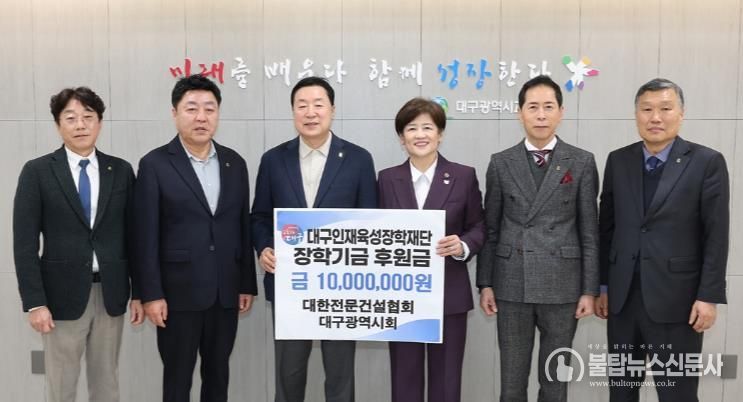 불탑뉴스신문사 차복원 기자 | 대구시교육청은 3월 5일 대한전문건설협회 대구광역시회가 장학금 1천만원을 대구인재육성장학재단에 기탁했다고 밝혔다.