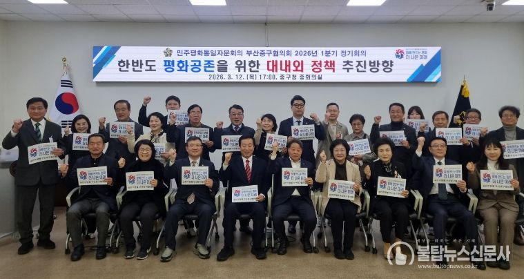불탑뉴스신문사 송행임 기자 | 민주평화통일자문회의 부산중구협의회(협의회장 김현진)는 3월 12일 오후 5시 중구청 중회의실에서 중구청장, 자문위원 등 30여 명이 참석한 가운데‘한반도 평화공존을 위한 대내외 정책 추진방향’을 주제로‘2026년 1분기 정기회의’를 개최했다.
