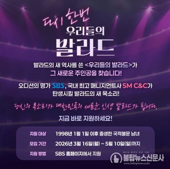 불탑뉴스신문사 한민석 기자 | 시즌2로 돌아오는 SBS ‘우리들의 발라드’가 발라드 신화를 이을 새로운 목소리를 찾는다.
