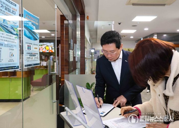 이 시장은 이날 센터 1층에 마련된 서명부에 이름을 적은 뒤 행정의 일선에서 애쓰는 성복동 직원들을 격려했다.