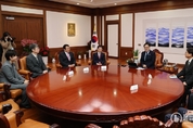 불탑뉴스신문사 차복원 기자 | 禹의장 "정치적 격변기 '연대의 힘'으로 위기 극복“ 23일(화) 사회복지공동모금회 등 기부·나눔단체 초청해 성금 전달 ▲우원식 국회의장이 23일(화) 오후 의장집무실에서 사회복지공동모금회에 성금을 전달하고 있다.(사진=국회사무처 사진팀) ▲우원식 국회의장이 23일(화) 오후 의장집무실에서 대한결핵협회에 성금을 전달하고 있다.(사진=국회사무처 사진팀) ▲우원식 국회의장이 23일(화) 오후 의장집무실에서 대한적십자에 성금을 전달하고 있다.(사진=국회사무처 사진팀) 우원식 국회의장은 23일(화) 오후 의장집무실에서 사회복지공동모금회, 대한결핵협회, 대한적십자사 등 기부·나눔단체를 국회에 초청해 성금을 전달했다. 우 의장은 "2025년 헌정사에 유례없는 정치적 격변 속에서도 우리 국민은 서로 손을 맞잡고 '연대의 힘'으로 위기를 슬기롭게 극복했다"며 "우리 사회의 여러 사회적 약자들이 조금이라도 더 따뜻하게 지낼 수 있도록 함께 노력하자"고 말했다. ▲우원식 국회의장이 23일(화) 오후 의장집무실에서 사회복지공동모금회, 대한결핵협회, 대한적십자사 등 기부·나눔단체를 국회에 초청해 성금을 전달하고 대화를 나누고 있다.(사진=국회사무처