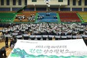 불탑뉴스신문사 차복원 기자 | 진안군이 26일 오후 진안문예체육회관에서 군민 500여 명과 주요 내빈이 참석한 가운데 ‘진안양수발전소 유치 성공기원 범군민 결의대회’를 성황리에 마무리하고, 유치 성공에 대한 강력한 의지를 대내외에 선포했다. 이날 결의대회에는 전춘성 진안군수를 비롯해 김관영 전북특별자치도지사, 안호영 국회의원, 동창옥 진안군의회 의장, 그리고 한국동서발전 권명호 사장 등이 참석하여 진안의 도약에 힘을 실었다. 먼저 성공기원공연으로 준비된 붓글씨 공연(캘리그라피)에서는 ‘새로운 시작, 100년 미래 진안양수발전소’라는 문구를 역동적인 붓놀림으로 그리며 진안의 강력한 의지를 예술적으로 승화시켜 참석자들의 큰 박수를 받았다. 이어 진행된 구동수 위원장과 신갑수 위원장의 결의문 낭독 직후 두 위원장의 선창에 맞춰 500여 군민이 하나 된 목소리로 일제히 손 피켓 펼치기 퍼포먼스가 진행돼 군민의 하나 된 힘으로 양수발전소를 진안에 유치하겠다는 결의를 다졌다. 특히, 마지막 유치 성공 다짐 퍼포먼스는 참석자들의 마음을 하나로 모았다. 군민과 주요 내빈들이 행사 시작 전 대형애드벌룬