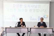 불탑뉴스신문사 차복원 기자 | 김영환 충청북도지사는 13일 충주를 방문해 지역 내 주요 현안사업장과 민생현장을 살피고 도정보고회를 통해 충주시민과 소통의 시간을 가졌다. 김 지사는 이날 통합돌봄 관계자와의 오찬간담회를 시작으로 달천동 행정복지센터를 방문해 생활 SOC사업 운영 현장을 확인하고 주민 주도의 도시재생 사업의 성과를 격려했다. 이어, 전통시장 장보기 행사와 함께 시장상인들의 현장 이야기를 청취했으며, 준공을 앞둔 건지노을숲 공사 현장을 살피며 관광분야 종사자와 함께 간담회를 가졌다. 이후 충주시의회 의원들과 지역 현안에 대한 의견을 나누고 3층 대회의실에서 300여 명의 충주시민이 참여한 가운데 도정보고회를 진행했다. 보고회에서는 2026년 도정운영방향과 함께 일하는밥퍼, 의료비후불제, 도시농부, 도시근로자 등 도정 주요사업을 소개했다. 또한, 충주시민과의 토크콘서트에서 △충북 도립 대표도서관 충주 건립 △탄금호 금가권역 생태관광공원 조성 △특장차 수소파워팩센터 건립 △충주시립노인요양원 기능보강 △충주 지방정원 조성 등 시 주요 사업에 대한 의견을 나눴다. 김영환