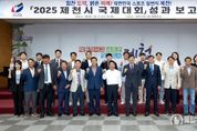 불탑뉴스신문사 차복원 기자 | 제천시는 지난 1일 제천시청 5층 청풍호실에서 '2025년 제천시 국제대회'성과보고회를 개최했다. 보고회에는 김창규 제천시장, 박영기 제천시의회 의장, 김경석 대한롤러스포츠연맹 회장(이상 공동조직위원장), 장재돈 대한체조협회 고문과 안성국 제천시체육회장(집행위원장), 오재성 제천시체조협회장, 최호열 제천시롤러스포츠연맹회장(이상 공동 사무총장) 및 유관기관, 단체장 3명과 종목단체 임원 및 회원 50여 명이 참석했다. 이날 보고회는 올해 제천시에서 열린 국제대회인 '2025 기계체조 아시아선수권대회(6.1.~6.15.)'와 '2025 아시아 롤러스케이팅 선수권대회(7.19.~7.30.)'의 성공 개최를 기념하고, 대회 관계자들의 노고를 격려하며 성과를 공유하는 자리였다. 행사는 유공 기관·단체에 대한 감사패 수여와 유공자 표창 순으로 진행됐다. 제천시장 감사패는 대회 유치와 개최를 주관한 ▲대한롤러스포츠연맹(회장 김경석) ▲제천시롤러스포츠연맹(회장 최호열) ▲대한체조협회(공석) ▲제천시체조협회(회장 오재성)에 수여됐다. 또한, 두 대회를 실질적으로 준비하고 집행한 ▲제천시체육회(회장