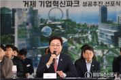 불탑뉴스신문사 송행임 기자 | 18일 거제 소노캄에서 ‘거제 기업혁신파크 성공추진 선포식’이 열렸다. 이번 행사는 경상남도, 거제시, ㈜그란크루세, 참여기업 및 핵심 입주기업들이 모여 거제 기업혁신파크의 성공적인 추진을 다짐하고, 협력과 상생의 기반을 다지기 위해 마련됐다. 선포식에는 박완수 경상남도지사를 비롯해 변광용 거제시장, 서일준 국회의원, 도·시의원, 거제 기업혁신파크 사업 공동제안자로 참여한 민간기업 ㈜그란크루세 김수홍 회장, 참여기업 ㈜수산인더스트리 김병현 사장, ㈜다산네트웍스 손경철 부회장, 네이버클라우드(주) 김준범 상무 등 관계자 20여 명이 참석했다. 행사는 △㈜그란크루세의 거제 기업혁신파크 사업 계획과 비전 제시, △참여기업의 시설 투자 등 참여계획 발표, △참석자들의 성공추진 선언문 낭독 순서로 진행됐다. 지난 10월 ㈜그란크루세와 네이버 클라우드(주)가 거제 기업혁신파크 참여기업(지분 투자)으로 투자확약서(LOC)를 체결한 이후 사업이 본궤도에 오르면서, 이번 선포식 추진에도 탄력이 붙었다. 변광용 거제시장은 지난 6월 네이버 클라우드의 기업혁신파크 투자유치를