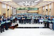 불탑뉴스신문사 차복원 기자 | 화순군은 10월 2일 군청 대회의실에서 ‘농어촌 기본소득 시범사업 화순 유치 결의대회’를 열고, 시범사업 유치를 위한 강한 의지를 밝혔다. 이번 결의대회는 인구 감소와 고령화 등으로 침체된 농촌 지역에 활력을 불어넣기 위해 정부가 추진 중인 ‘농어촌 기본소득 시범사업’의 대상지로 화순군이 선정될 수 있도록 결의를 다지는 자리였다. ‘농어촌 기본소득 시범사업’은 전국 69개 인구감소지역 중 6개 군을 선정해 2026년부터 2년간 해당 지역 주민 모두에게 매월 15만 원의 기본소득을 지급하는 정책이다. 결의대회에는 구복규 화순군수, 오형열 군의회 의장을 포함한 군의원 10명이 참석해 피켓을 들고 화순군의 적극적인 참여 의지를 나타냈다. 또한 화순군 농촌지도자회 회원 20여 명과 군청 직원 250여 명도 미니 현수막을 펼쳐 보이며 시범사업 유치에 대한 강한 의지를 나타냈다. 행사 말미에는 참석자 전원이 ‘농어촌 기본소득 시범사업은 화순으로’를 힘차게 외치며, 화순군민의 단합된 염원과 결의를 다시 한번 확인했다. 구복규 군수는 “침체된 농촌에 활력을