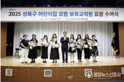 불탑뉴스신문사 차복원 기자 | 서울 성북구가 지난 26일 관내 어린이집에서 장기간 근무하며 보육서비스 향상과 우수 보육프로그램 개발, 보육환경 개선에 기여한 모범 보육교직원에게 표창을 수여했다. 올해 수상자는 원장, 보육교사, 조리사 등 총 77명으로, 각자의 자리에서 아이들의 안전과 건강, 교육의 질 향상에 힘써온 공로를 인정받았다. 이번 표창은 성북구가 지역 내 보육의 질을 높이고 아이들이 안정적이고 즐거운 환경에서 성장할 수 있도록 기여한 교직원을 격려하기 위해 마련됐다. 수상자들은 오랜 경력 동안 어린이집 운영과 교육, 급식 관리 등 다양한 분야에서 모범적인 활동을 이어온 점이 높게 평가됐다. 이승로 성북구청장은 인사말에서 저출생으로 인해 어려움이 가중된 보육 현장에서 묵묵히 일하는 교직원들의 노고에 존경과 깊은 감사를 표했다. 또한 앞으로도 아이들이 건강하게 성장하고 꿈을 키워 나갈 수 있도록 지속적으로 보육의 질을 높이는 데 힘써 줄 것을 당부했다. 이와 함께 구 차원에서도 교직원의 처우 개선과 보육환경 개선을 위해 다양한 지원 방안을 모색하고 추진하겠다고 밝혔다. 이번 표창 수여식은 교직원들의 사기