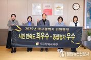 불탑뉴스신문사 차복원 기자 | 대구 서구청은 대구시에서 실시한 2025년 민원행정 시민 만족도 조사에서 최우수, 종합평가에서 우수 기관에 선정됐다고 밝혔다. 대구시는 민원행정서비스 품질 향상을 위해 매년 ‘민원행정 시민 만족도 조사’를 실시하고 있다. 시민 만족도 조사는 지난해 10월부터 올해 9월까지 민원 서비스를 이용한 시민을 대상으로 민원 서비스 과정, 서비스 결과, 민원 응대 태도 및 전반적인 만족도에 대해 전화 설문의 형태로 이루어졌으며, 서구는 9개 구·군 중에서 가장 높은 종합만족도 96.8점을 얻어 ‘최우수’기관으로 선정되는 쾌거를 이루었다. 또한 서구는 대구시에서 매년 실시하고 있는 민원행정 종합평가에서도 3년 연속‘우수’기관으로 선정되는 영예를 안았다. 대구시의 민원행정 종합평가는 9개 구·군의 민원제도 운영 분야 14개 지표와 민원처리 현황 분야 8개 지표 등 총 22개 지표에 걸쳐 이루어진다. 서구는 안전한 근무환경 조성, 스마트 민원서비스 운영 지원, 고충민원 처리·관리 및 해결 노력 등 전반적인 분야에서 높은 평가를 받았다. 특히, 2일 이상 법정민