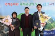 불탑뉴스신문사 한기석 기자 | 고성군은 2월 2일 군수실에서 고성박물관 및 고성탈박물관 리모델링 사업의 성공적인 추진에 기여한 학예사 2명에게 군수 표창을 수여했다. 이번 표창은 박물관 리모델링과 재개관 준비 과정에서 전시 기획과 콘텐츠 정비, 자료 조사, 운영 지원 등 학예 업무 전반을 성실히 수행하며 박물관 운영의 기반을 다진 공로를 인정해 마련됐다. 표창 대상자인 이원배 학예사는 고성박물관 리모델링 및 재개관 준비 과정에서 전시 자료 조사·정리, 전시 콘텐츠 보완, 현장 점검 등 학예 업무를 성실히 수행해 사업이 차질 없이 추진될 수 있도록 뒷받침했다. 또한,관람객 응대와 운영 지원을 통해 박물관의 안정적인 운영과 신뢰도 제고에 기여했다. 남진아 학예사는 20년간 학예 업무에 종사하며 고성 지역 문화유산의 보존과 활용, 박물관 운영 발전에 기여해 왔다. 특히 고성탈박물관 리모델링 사업 추진 과정에서 전시 기획과 공간 구성, 사업 조정, 재개관 준비 전반을 총괄하며 전통 탈 문화의 가치를 현대적 감각으로 재해석한 전시 방향을 제시하고, 관람객 체험 중심의 전시 공간 조성에 핵심적인
