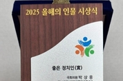 불탑뉴스신문사 송행임 기자 | 박상웅 의원, 시민단체 선정 ‘2025 올해의 좋은 정치인상’ 수상 영예 - 범시민사회단체연합 주관... 합리적 의정활동 및 민생 중심 문제 해결 높이 평가 - “국민 눈높이 정치가 최우선, 현장에서 답 찾는 책임 정당 정치 실현할 것” ▲국민의힘 박상웅 의원 ‘2025 올해의 인물, 좋은 정치인상’을 수상(사진제공=의원실) 국민의힘 박상웅 의원(경남 밀양·의령·함안·창녕, 원내부대표)이 시민사회가 인정한 ‘2025 올해의 좋은 정치인’에 선정되며 의정 활동의 전문성을 다시 한번 입증했다. 350여 시민단체 연합이 선정한 ‘올해의 인물’ 박상웅 의원은 지난 24일, 교육·환경·정치 등 12개 분야 350여 시민단체가 참여하는 ‘범시민사회단체연합(이하 범사련)’으로부터 ‘2025 올해의 인물, 좋은 정치인상’을 수상했다. 범사련은 매년 공정한 심사를 통해 국가 발전과 시민사회의 가치 실현에 기여한 인물을 선정해 발표하고 있다. 현장 중심 정책 전문성 및 국격 제고 공로 인정 범사련 측은 박 의원이 국민과의 신뢰를 바탕으로 책임 있는 의정활동을 펼쳐온 점을 선정 배경으로 밝혔다. 특히 사실과 원칙에 기반한 합리적인 비판과 대안 제시