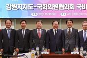 불탑뉴스신문사 차복원 기자 | 김진태 강원특별자치도지사는 10월 30일 오후 2시, 국회 의원회관에서 도내 지역구 국회의원 7명과 함께 도 국회의원협의회를 열고 2026년도 국비 추가 확보 방안 등을 논의했다. 이번 간담회는 2026년도 정부예산안의 국회 심의가 본격화되는 시점에 맞춰 도와 지역 국회의원 간 협력체계를 강화하기 위해 마련된 자리로, 김 지사를 비롯해 지역구 국회의원 보좌진이 참석해 예산 확보 전략을 중심으로 실무적인 논의를 진행했다. 이 자리에서 도는 올해 국비 10조 원 시대를 처음으로 연 성과를 바탕으로 정부 예산안에 미반영된 24개 사업(총 612억 원)의 국비 추가 확보 방안을 논의하고, 해당 사업들이 국회 심의 과정에서 반드시 반영될 수 있도록 국회의 적극적인 협력을 요청했다. 이와 함께 ▲용문~홍천 광역철도 예타 통과 ▲삼척~강릉 고속화철도 예타 통과 ▲포천~철원 고속도로 예타 통과 ▲소양8교 건설 국비 반영 ▲제5차 국가철도망 구축계획 및 제6차 국도‧국지도 건설계획 최대 반영 등 강원지역 주요 에스오시(SOC) 현안과제에 대해서도 폭넓은 논의가 이뤄졌다. 한기호 국회의