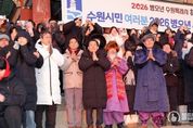 불탑뉴스신문사 차복원 기자 | 이재준 수원특례시장은 1일 아침 팔달산 서장대에서 시민들과 함께 해맞이를 하고, “시민 여러분께서 소망하시는 모든 것을 성취하시길 기원하겠다”고 말했다. 이재준 시장은 “올해도 시민 여러분과 함께 수원을 더 새롭고, 더 빛나게 만들기 위해 노력하겠다”며 “모든 시민이 수많은 역사와 희망을 만드는 멋진 한 해가 되길 바란다”고 기원했다. 서장대 일원을 가득 메운 시민들은 떠오르는 해를 보며 함께 소원을 빌었다. 수원시는 12월 31일 저녁부터 1월 1일 아침까지 일원에서 시민들과 함께하는 송년·신년 행사를 열었다. 12월 31일 밤 10시 30분부터 행궁광장 특설무대에서 ‘제야음악회’가 열렸다. 자정에는 여민각에서 제야 타종 행사를 열고 2026년 병오년(丙午年)의 시작을 알렸다. 이재준 시장, 이재식 수원특례시의회 의장, 김영진(수원시병)·김준혁(수원시정) 의원, 시민 대표 등이 타종했다. 이재준 수원시장과 김현수 제1부시장, 4개 구청장, 실·국장 등은 1일 오전 9시 현충탑을 참배했다.