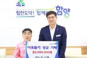 불탑뉴스신문사 송행임 기자 | 함양군은 13일 이병석 사무장(성창기 법무사사무소)이 함양군청을 방문해 취약계층에 전달해 달라며 성금 200만 원을 기탁했다고 밝혔다. 이날 기탁식에 참석한 이병석 사무장은 “이번 기탁이 소외된 이웃들에게 조금이나마 도움이 됐으면 한다”라고 전했다. 이에 진병영 군수는 “작년에 이어 올해도 어려운 이웃들을 위해 성금을 기탁해 주신 이병석 사무장님께 감사드린다.”라며 “소외되는 이웃이 없도록 세심하게 살피며, 필요한 분들에게 잘 전달될 수 있도록 최선을 다하겠다.”라고 밝혔다. 이날 기탁된 성금은 경남사회복지공동모금회를 통해 각 읍·면의 어려운 세대에 전달될 예정이다.