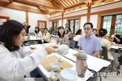 불탑뉴스신문사 차복원 기자 | 대전 동구는 13일 이사동 유교전통의례관 대전별서에서 관내 어린이집 영유아 부모를 대상으로 전통 다도와 향 체험을 결합한 ‘차향유정(茶香有情) 차와 향기를 나누다’ 프로그램을 운영했다고 밝혔다. 이번 프로그램은 육아로 지친 부모들이 바쁜 일상 속에서 잠시나마 자신을 돌보고 내면의 평온을 되찾을 수 있도록 기획된 힐링 프로그램으로, 총 3회에 걸쳐 운영될 예정이다. 첫 회차인 이날 체험에는 박희조 동구청장을 비롯해 영유아 부모 20여 명이 참여해 전문 강사의 지도 아래 차를 우리고 마시는 전통 다도 예절을 배우고, 전통 향을 활용한 명상 활동을 통해 감각을 깨우며 마음을 다스리는 시간을 가졌다. 특히, 단순한 체험을 넘어 전통문화의 정취를 느끼고 바쁜 육아 생활 속에서 마음의 여유를 되찾는 의미 있는 시간으로 꾸며져 참여자들의 큰 호응을 얻었다. 박희조 동구청장은 “이번 다도체험을 통해 부모님들이 짧지만 깊은 쉼 속에서 마음의 여유를 되찾는 시간이 됐길 바란다”며 “앞으로도 전통문화를 쉽고 친근하게 접할 수 있는 다양한 프로그램을 지속적으로 발굴해 나가겠다”고 말했다.
