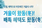 불탑뉴스신문사 차복원 기자 | 경기도와 경기도주식회사가 공동 운영하는 경기도 공공배달앱 배달특급이 겨울을 맞아 12월 한 달간 ‘겨울이왔동(冬)’ 소비자 할인 프로모션을 진행한다. ‘겨울이왔동(冬)’ 소비자 할인 이벤트는 ‘통 큰 세일’ 프로모션 종료 등으로 아쉬움이 남는 소비자들의 편익을 증대하기 위해 마련했다. 배달 특급 전체 회원, 전체 서비스 지역을 대상으로 1만2천원 주문에 사용가능한 3천원 할인 쿠폰을 예산 소진시까지 1일 1인 1회 지급한다. 한편 배달특급의 모든 이벤트는 해당 상단 배너 기능을 통해 확인 가능하며, 지역에 따라 할인 조건과 금액이 달라질 수 있어 사전 확인이 필요하다.
