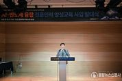 불탑뉴스신문사 송행임 기자 | 강원특별자치도는 10월 15일 강원대학교 미래도서관에서 'AI․반도체 융합 전문인력 양성교육' 발대식을 개최하고 2029년까지 전문인력 450명을 양성한다고 밝혔다. 발대식에는 김진태 강원특별자치도지사를 비롯하여 주관대학인 강원대학교 정재연 총장, 참여기관인 한국전자통신연구원(ETRI) 방승찬 원장 및 한국생산성본부(KPC) 박성중 회장 등 관계 기관장이 참석해 자리를 빛냈다. 이번 'AI․반도체 융합 전문인력 양성교육'은 한국전자통신연구원(ETRI)과 한국생산성본부(KPC) 등 국내 최고 수준의 기관이 참여하는 사업으로 2029년까지 5년간 추진될 예정이다. 아울러, 도와 강원대학교, 한국전자통신연구원, 한국생산성본부는 AI․반도체 산업 생태계 조성을 위해 인적․물적 역량을 공유하고, 국비 신규사업 발굴과 기업유치 및 전문인력 양성 등을 지속적으로 추진하기로 협약을 체결했다. 10월부터 추진되는 한국생산성본부(KPC)의 'DSAC* 및 AI 시스템 반도체 Cluster ASAT' 교육은 AI 기반 데이터 사이언티스트를 효과적으로 양성하고 인공지능 시스템 반도체 응용